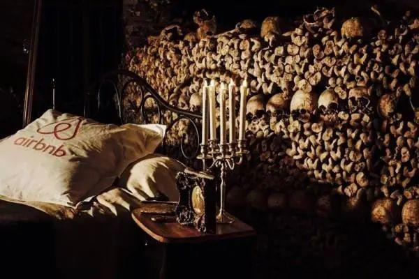 2015年,Airbnb 在巴黎著名的地下墓穴安置了床具,邀请粉丝与 600 万具遗骸共度一晚,成为这个墓穴里仅有的,活着清醒来的人。