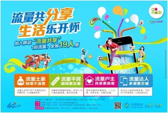 比如,浙江移动在“流量共享”业务主画面创作过程中,就做了4套主题,4种画面创意表现,最终挑了创意1来投放。