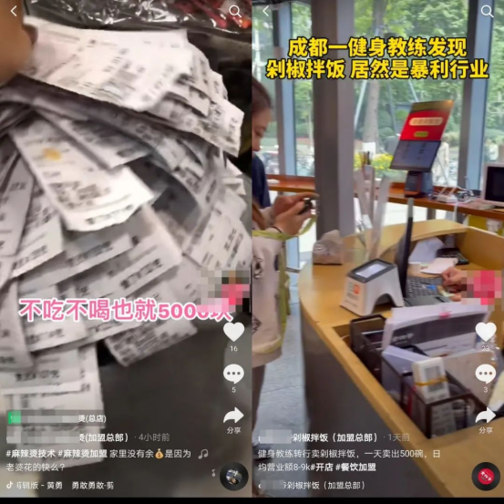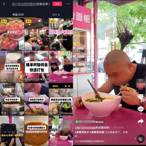 还有非常直接的形式,比如直接向你展示美食,展示招商加盟店的火爆程度。