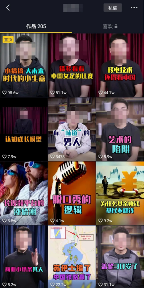 他们主要输出的短视频内容如上,就是一些商业知识、创业故事、项目解密、赚钱方法、贩卖焦虑等等。